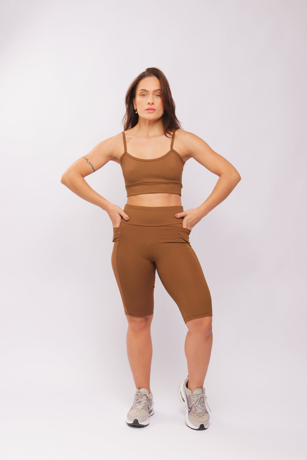 25002 - Bermuda Com Recorte e Bolsos Laterais Marrom Cafe - Duna Casual