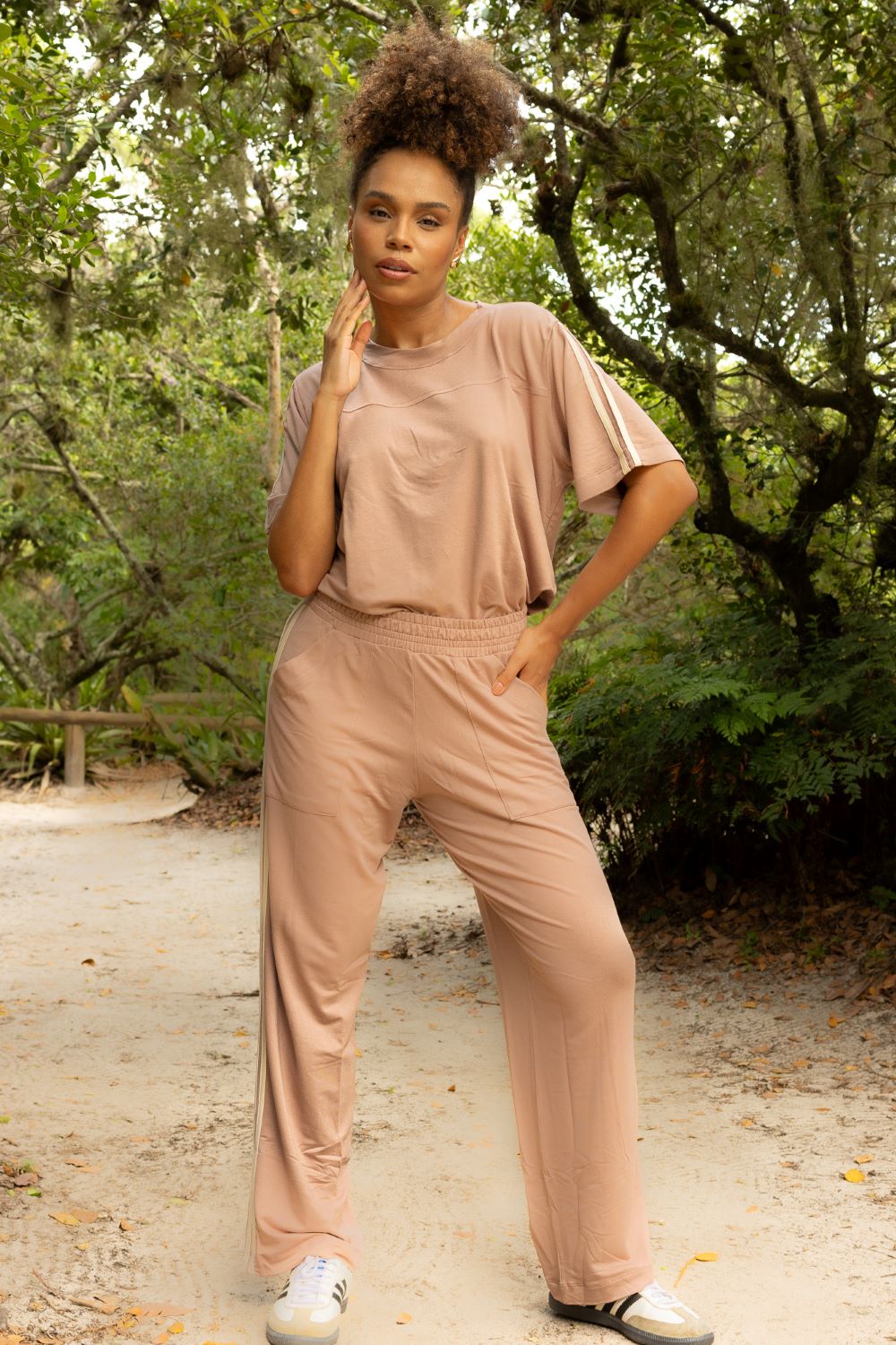 PL008 - Blusa Manga Curta Comfy Bege - Duna Casual