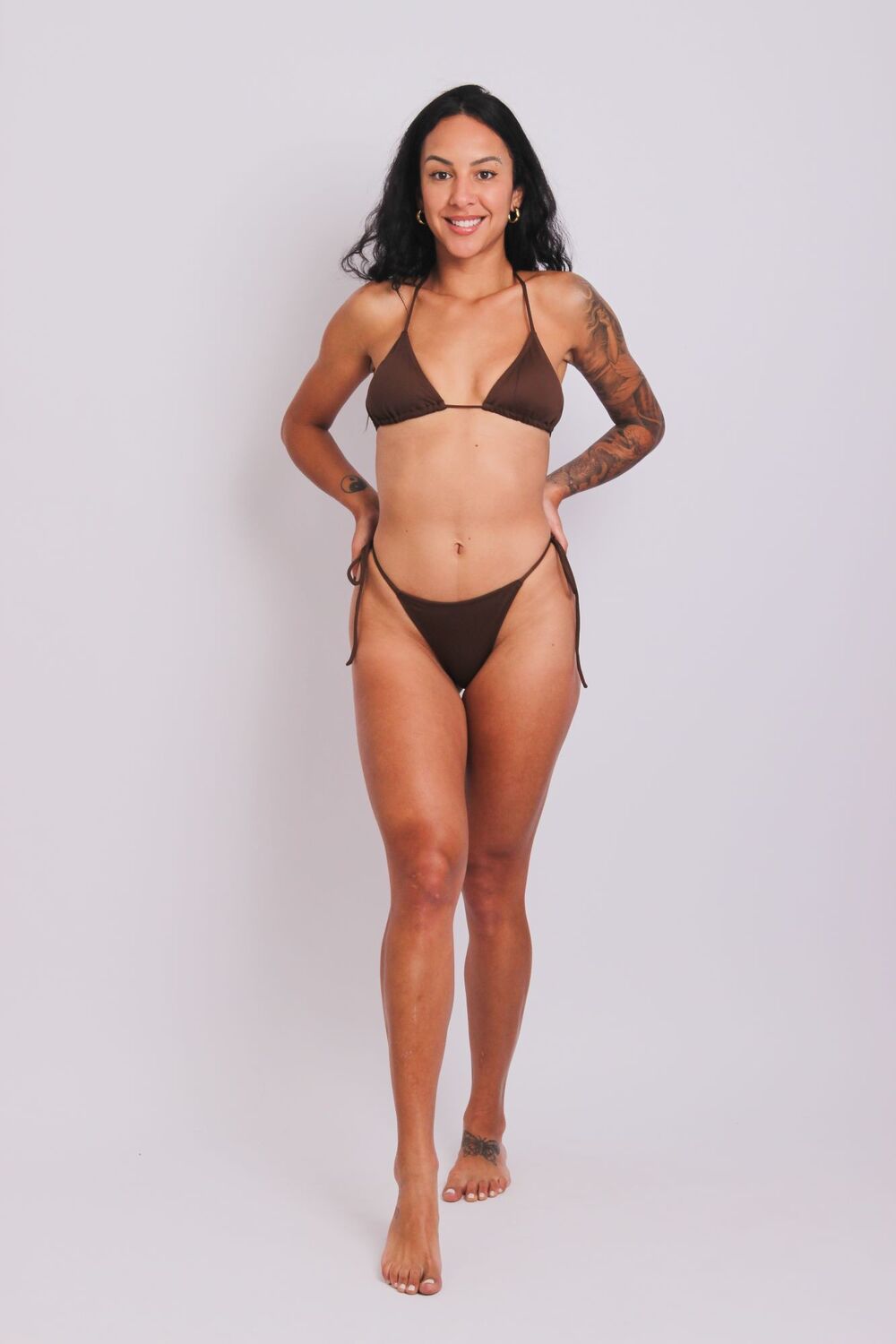 2408 - Calcinha de Biquíni de Amarrar Com Lacinho Fino Marrom - Duna Casual