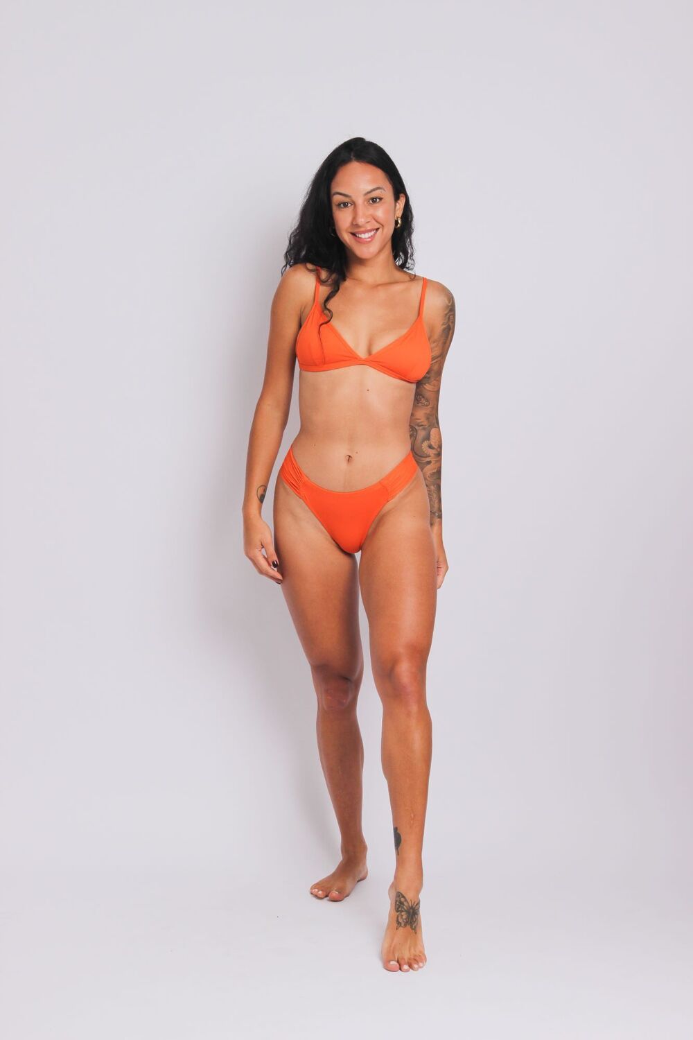 2405 - Calcinha do Biquíni Com Lateral Larga Franzida Laranja - Duna Casual