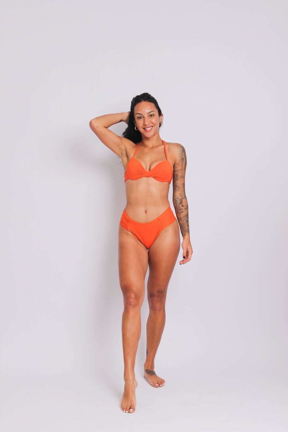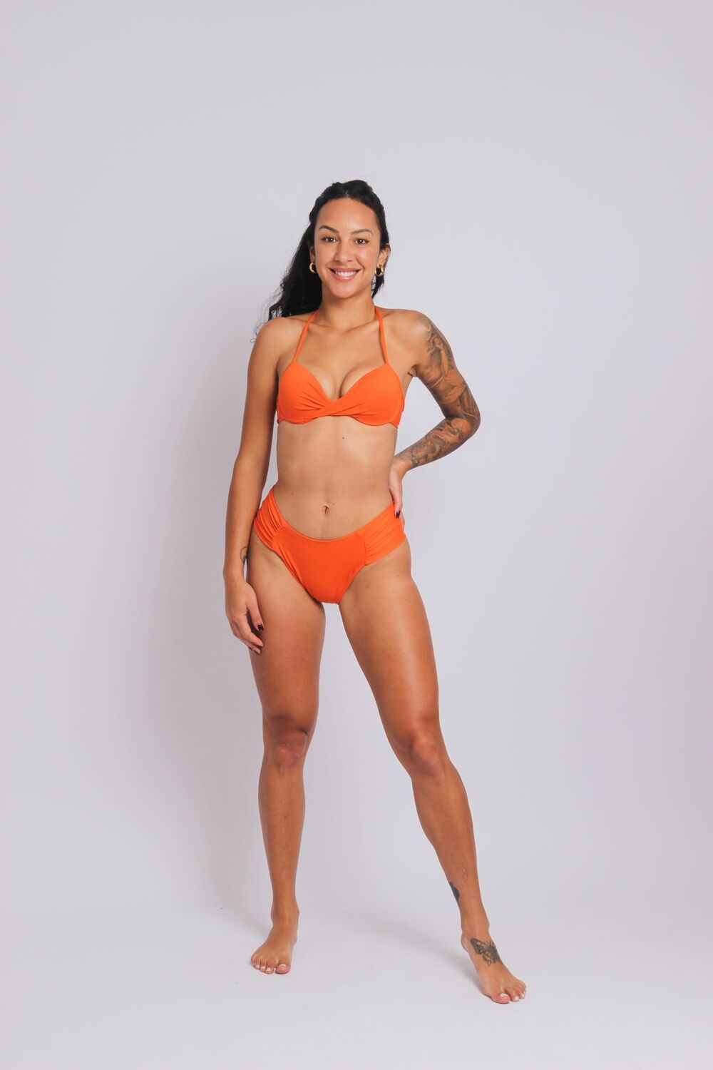 2406 - Calcinha de Biquíni Com Lateral Média Franzida Laranja - Duna Casual
