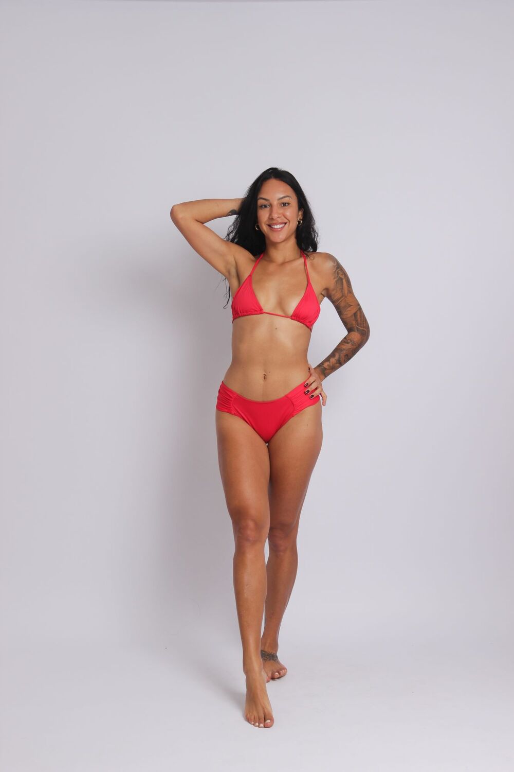 2405 - Calcinha do Biquíni Com Lateral Larga Franzida Vermelho - Duna Casual