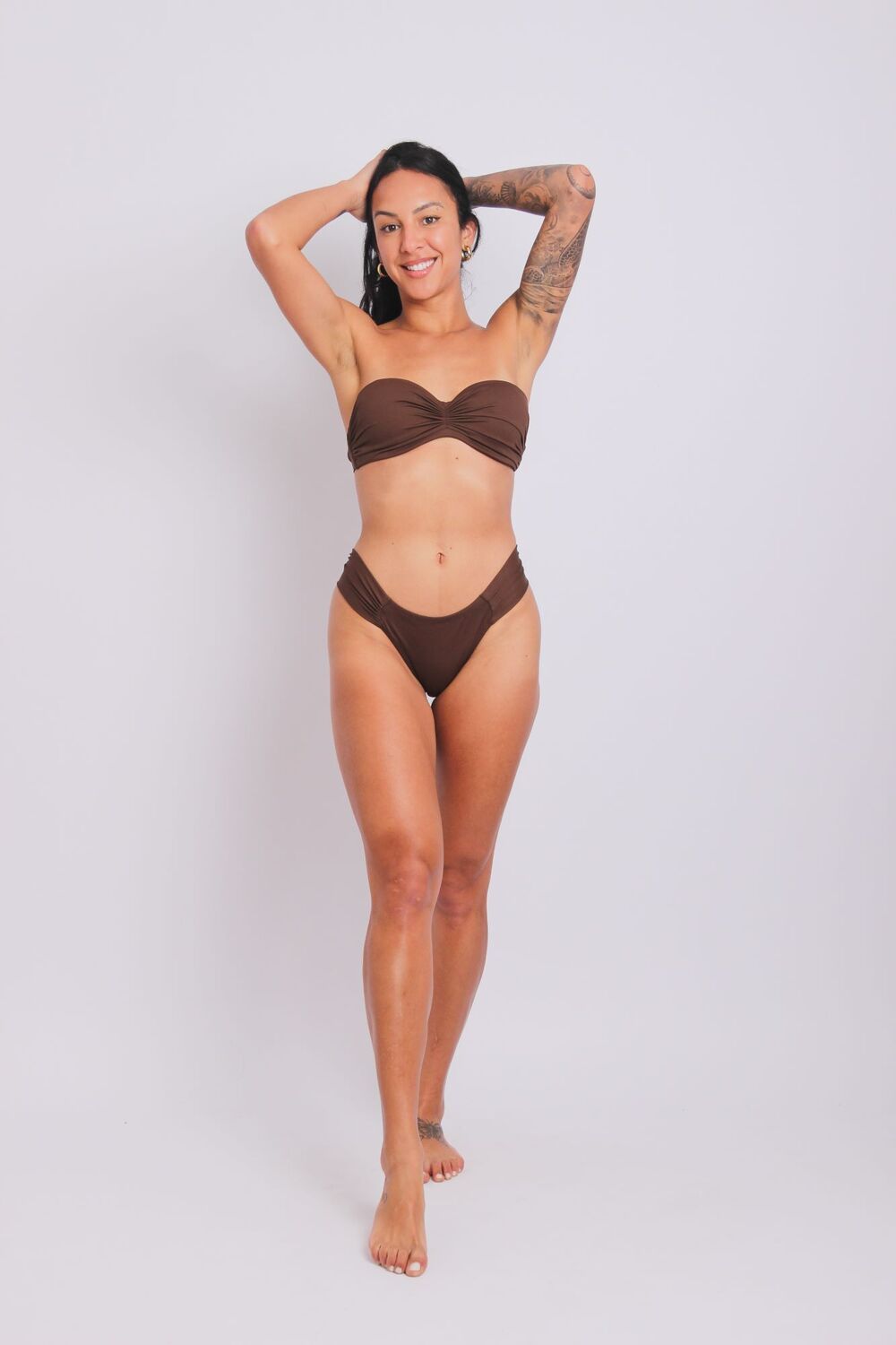2406 - Calcinha de Biquíni Com Lateral Média Franzida Marrom - Duna Casual